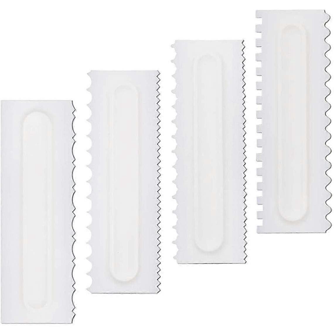 Set of 4 Decorative Icing Smoother Scrapers and Combs, Serrated Plastic Cake Scrapers, Decorative Tool for Buttercream and Mousse Cake Edges