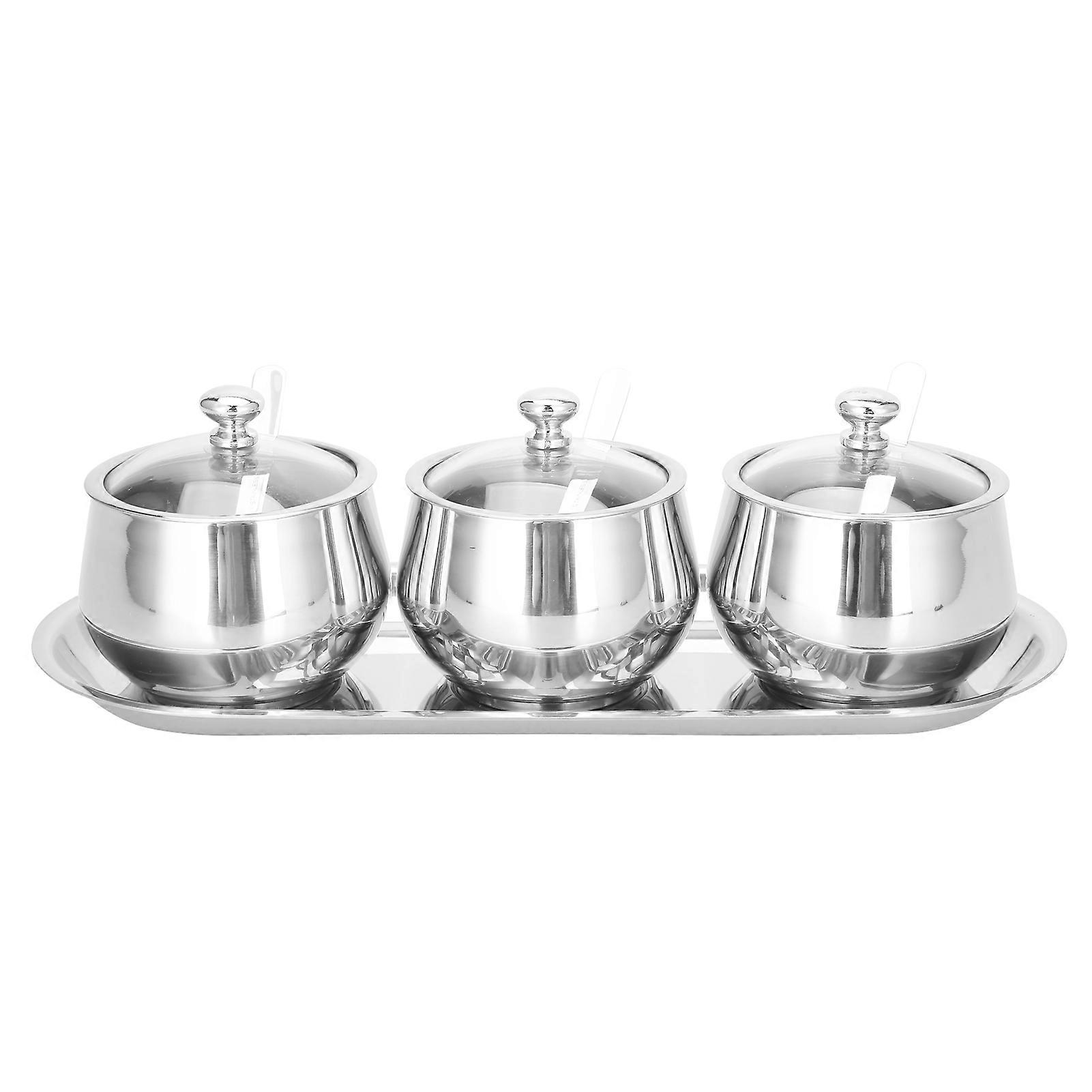 3-Piece 304 Stainless Steel Seasoning Box Visible Spice Container Kitchen Utensils with Lid Spoon