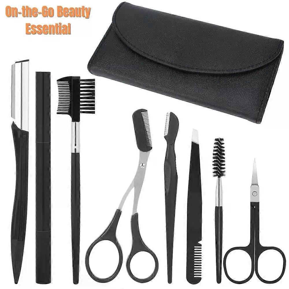 Eyebrow Grooming Kit with Razor Scissors Tweezers Comb & Brush 8PCS Full Set for Men & Women with Bag Eyebrow Grooming Kit
