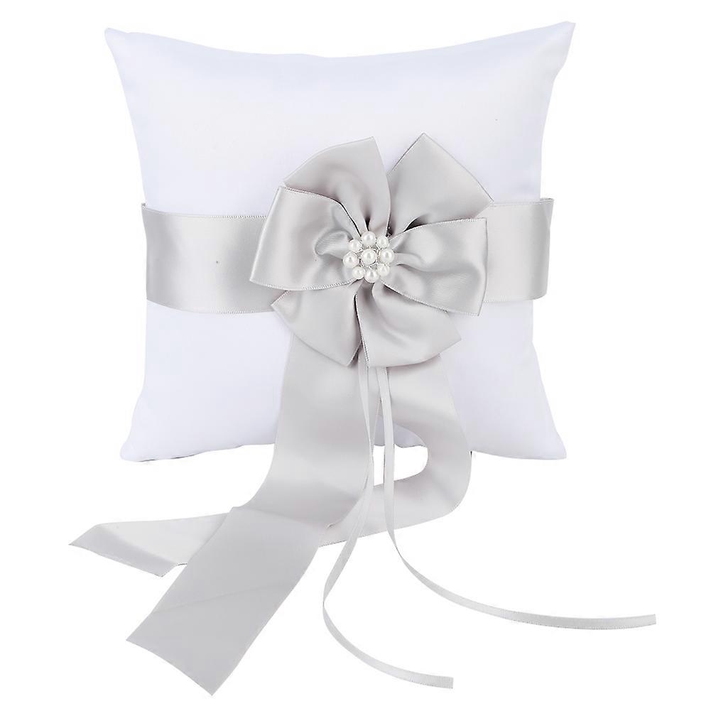 Ivory wedding ring bearer pillow with satin ribbon and faux pearls