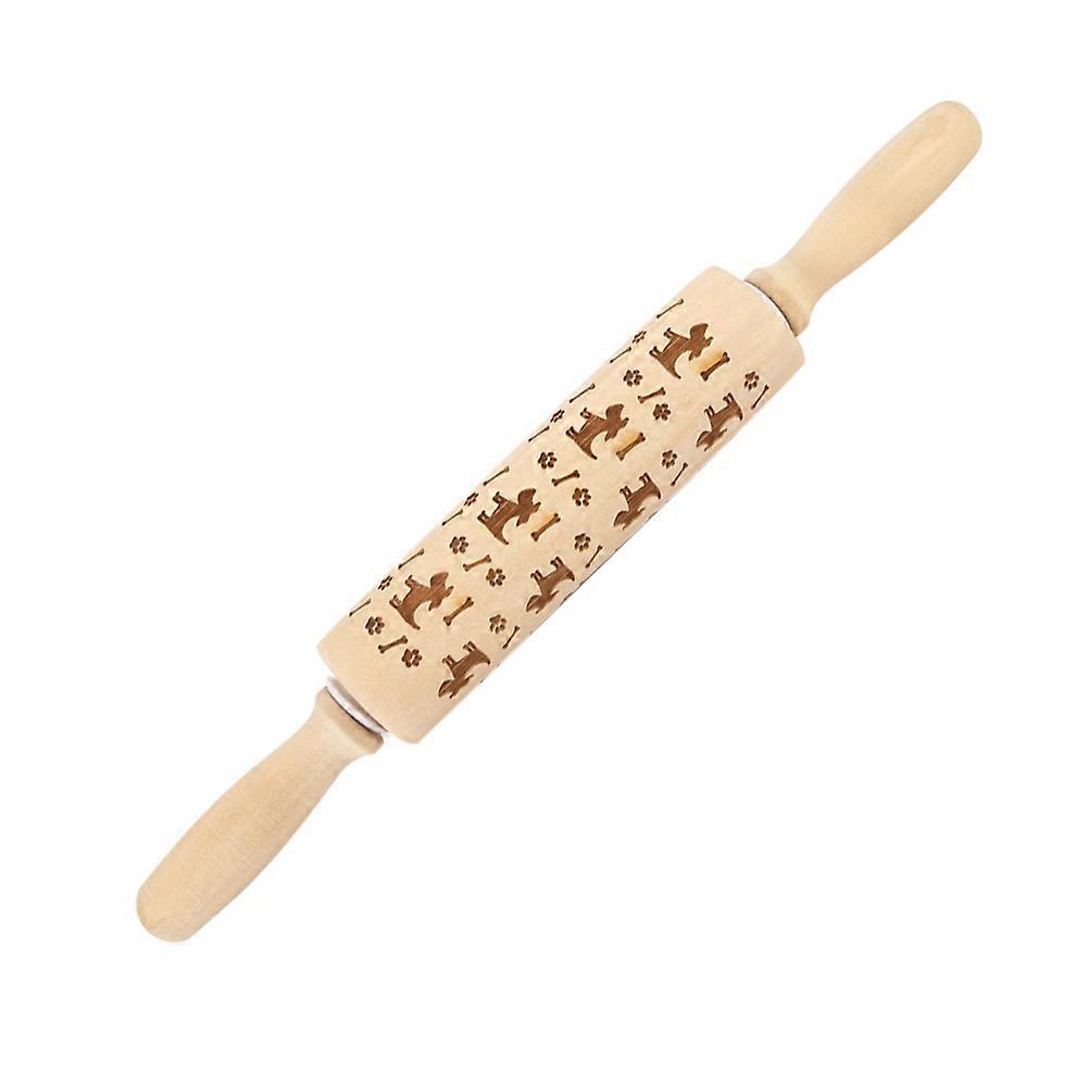 Natural Wooden Rolling Pin with Dog Design for Kneading Dough, Pastries, Noodles, Essential Home Kitchen Utensils