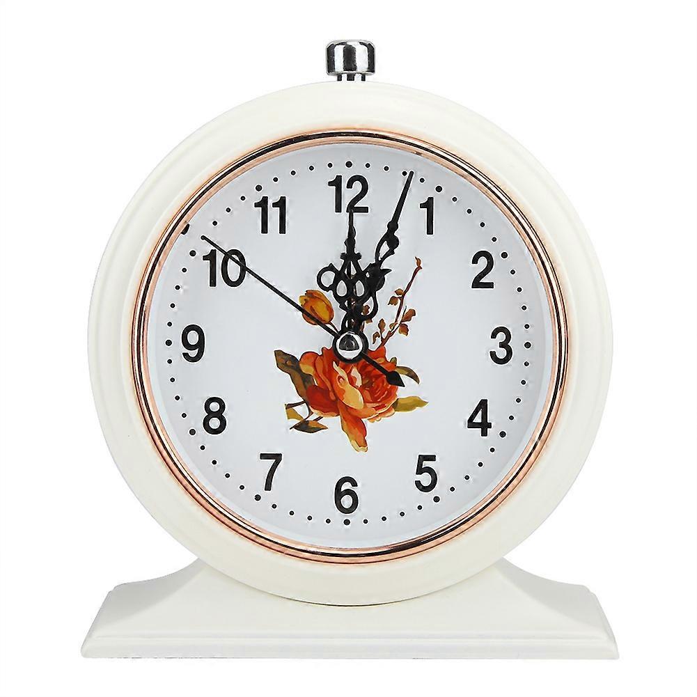 Vintage Metal Twin Bell Alarm Clock with Night Light (White)