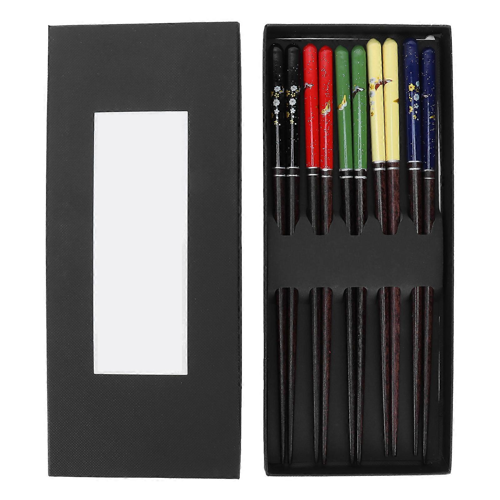 5 Pairs Wooden Chopsticks Set with Beautiful Printing, Pointed Head Tableware, Sushi Chopsticks for Home