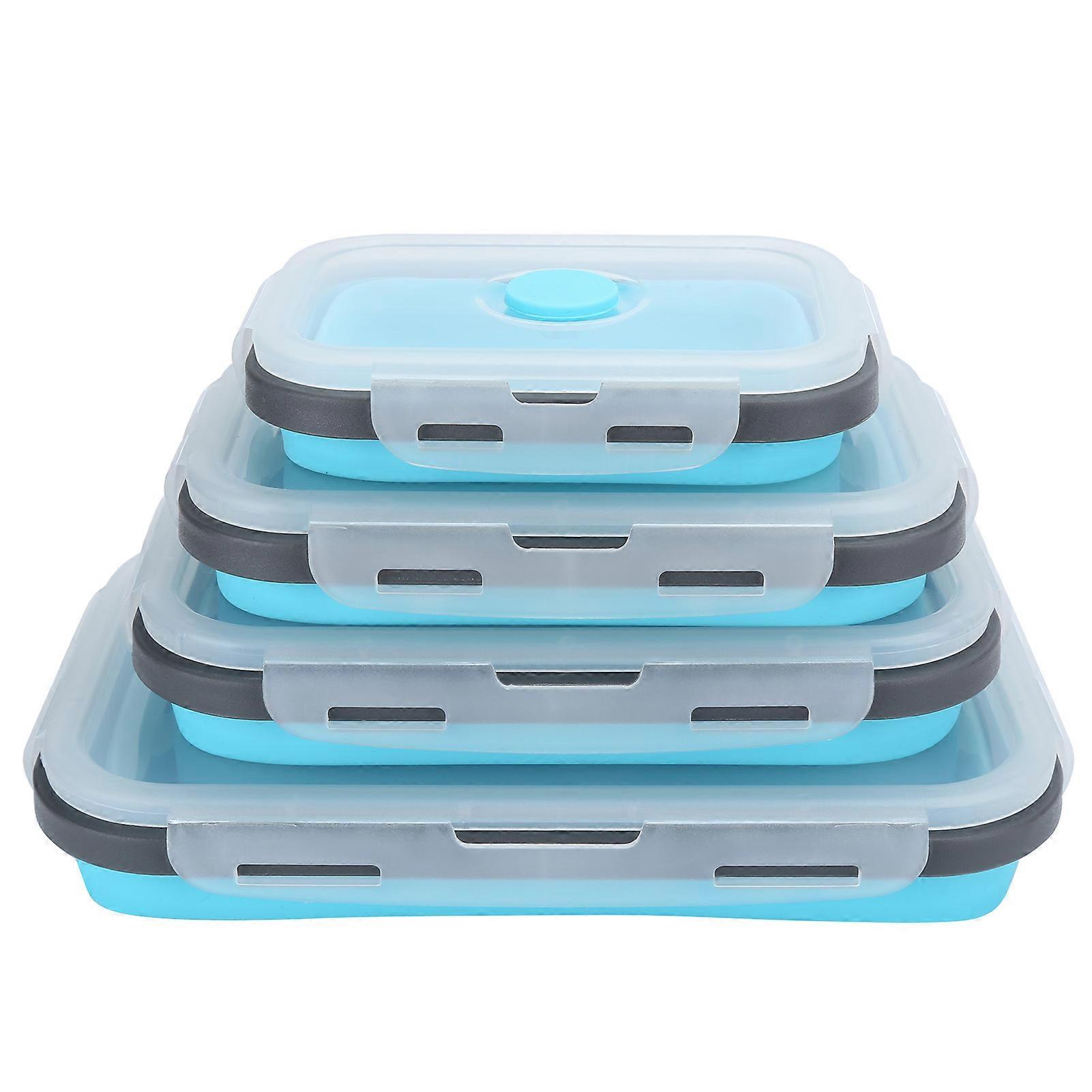 Set of 4 Collapsible Silicone Lunch Boxes Food Storage Containers Bento Box for Outdoor Travel