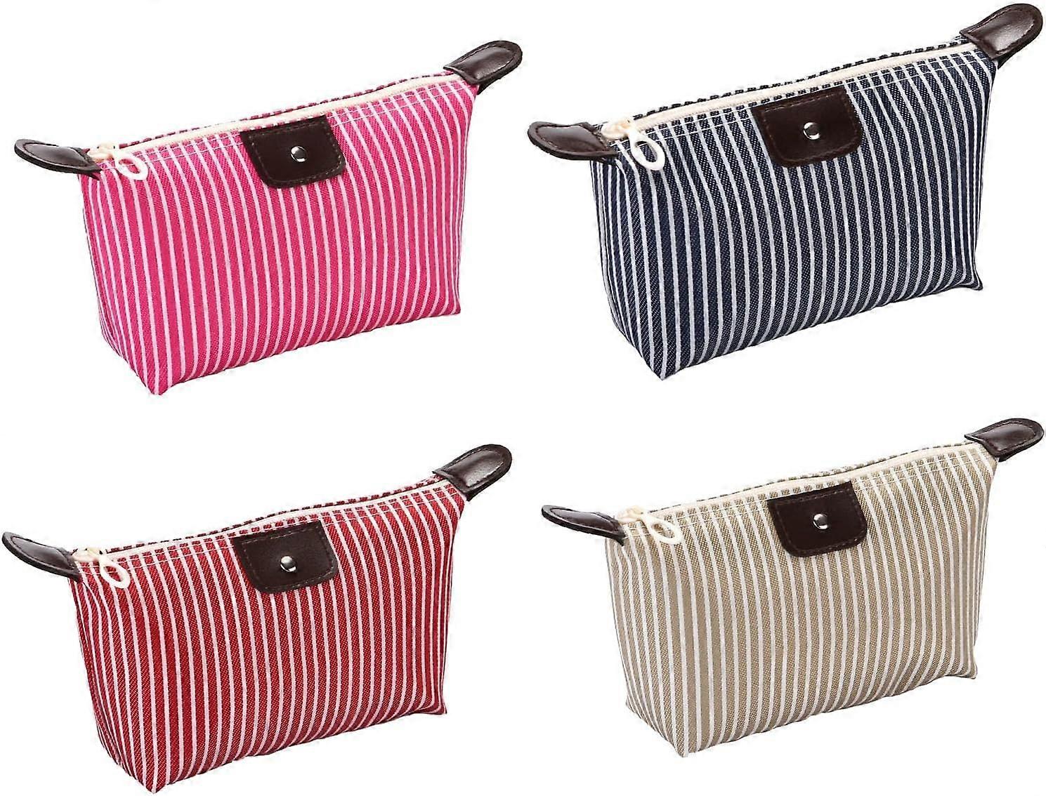 1. Unique design: Striped design, stylish and attractive. Smooth zipper for easy storage and access. Foldable for convenient carrying. 2. Material: This makeup bag is made of waterproof nylon fabric, resistant to moisture, providing better protection for your items. The interior is lined with leather and waterproof material. The surface is smooth and easy to clean. 3. Multi-functional: This versatile small bag can be used as a makeup bag, storage bag, wallet, stationery bag, tech accessory bag, and travel accessory bag, offering convenient storage solutions. 4. Large Capacity: This makeup bag measures 10.2 x 6.3 x 2.3 inches, providing ample space for your small personal items. 5. This adorable makeup bag is vibrantly colored, stylish, and has a compact, charming design, making it extremely lightweight. It makes an excellent gift for female friends and family members.
