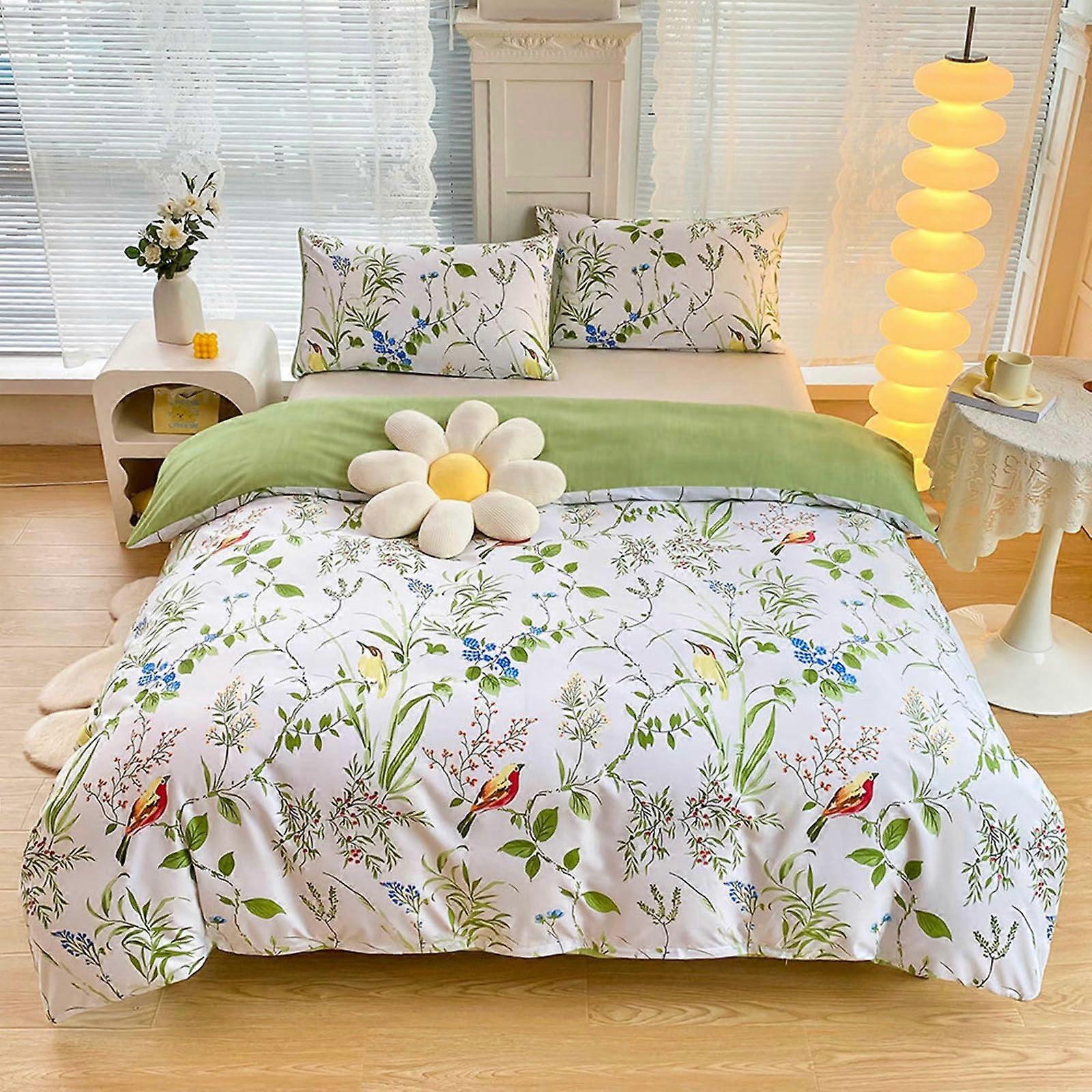 Floral Bedding Sets Duvet Cover With Zipper, Green Bird Flower Pattern, Super King 260x220 cm, 2 Pillowcases