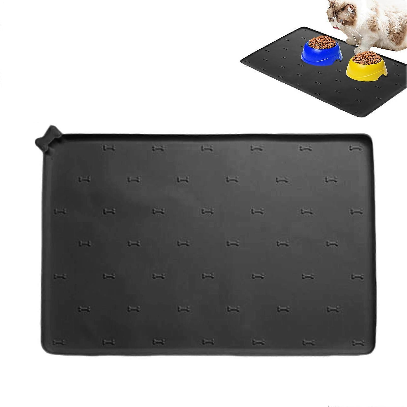 Pet Feeding Mat, Silicone Spill-Proof Quick-Dry Foldable Non-Slip Feeding Mat for Dogs and Cats 60x40 cm Black D