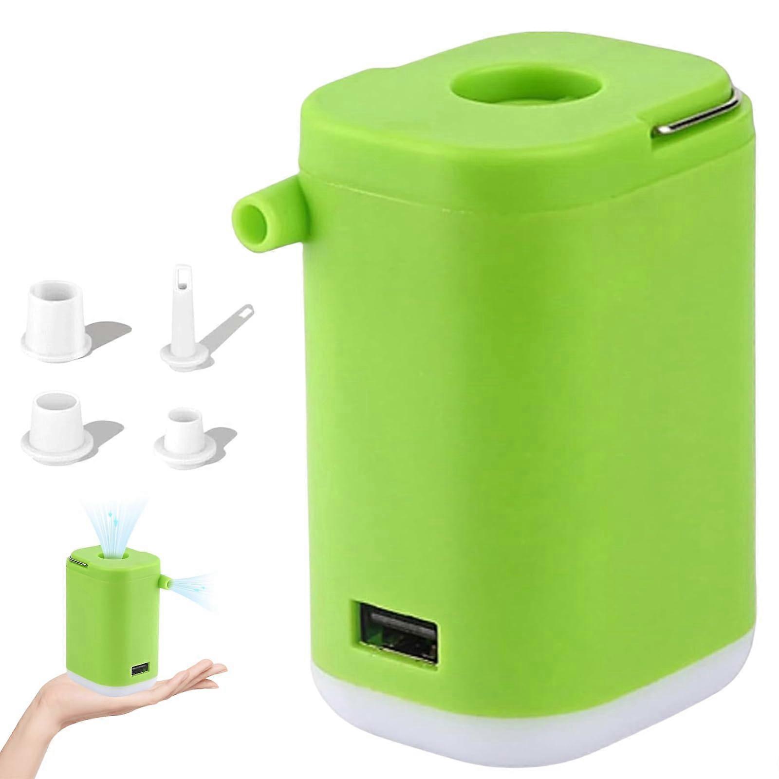 Mini Portable Air Pump with LED Light, 4-in-1 Rechargeable 2400mAh for Camping, Air Mattress, Vacuum Bags, Lantern Green