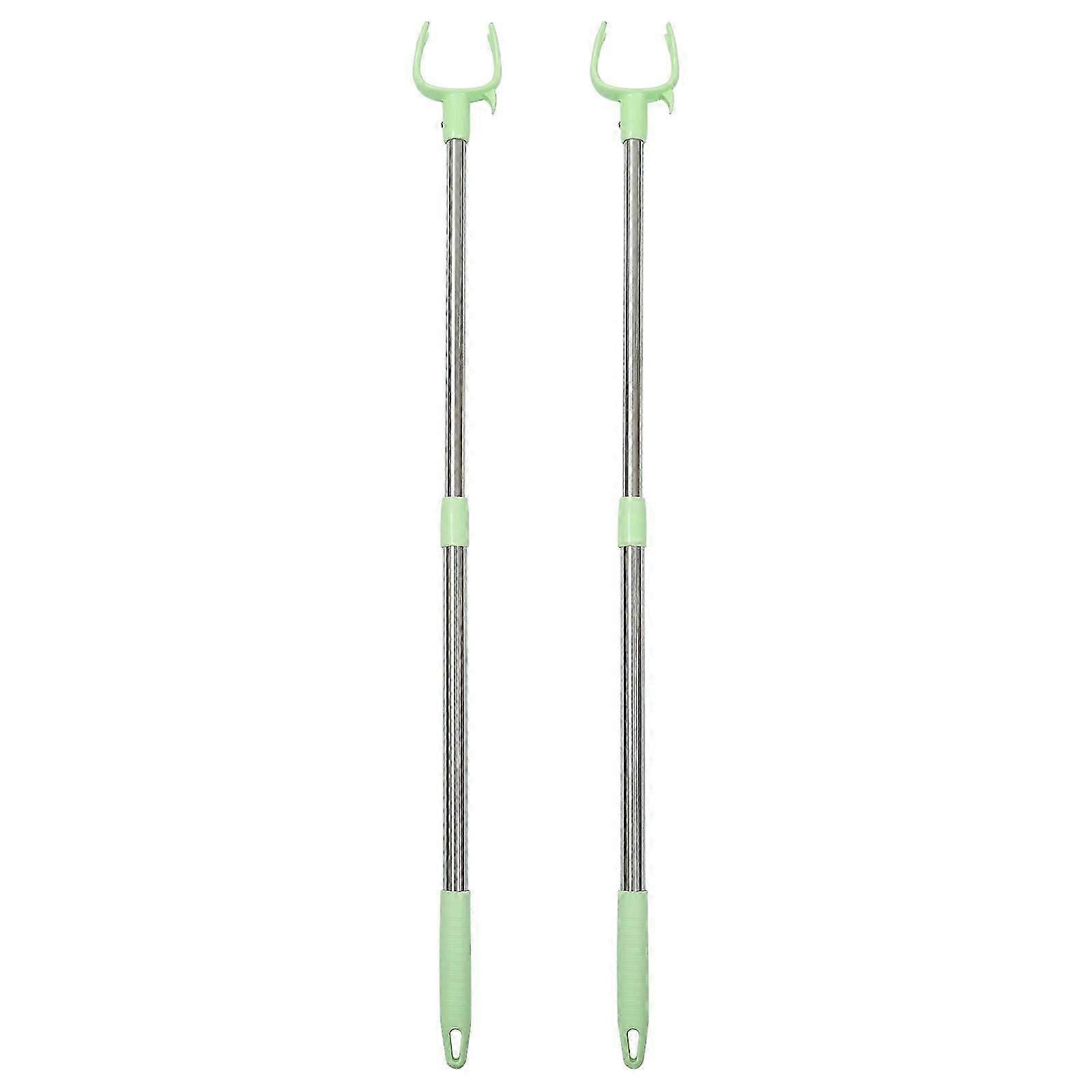 2 Telescopic Clothing Hanger Poles - Sturdy Metal Garment Hooks
