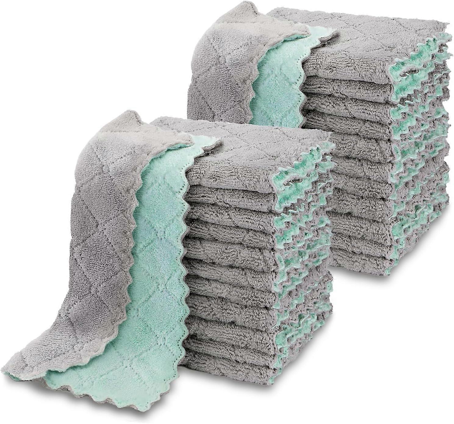 Kitchen towels, 20 pack absorbent coral fleece dish towels, odor-free reusable dish cloths, microfiber cleaning cloths, quick-drying dish cloths