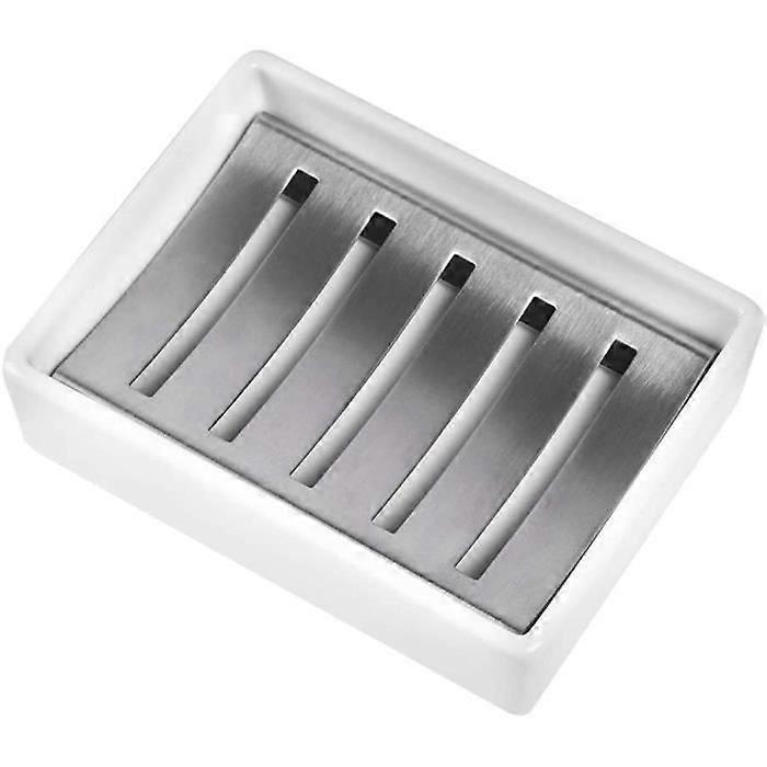Soap Box,SUS304 Stainless Steel Ceramic Soap Dish Double Layer Soap Holder Draining Shower Soap Box for Bathroom
