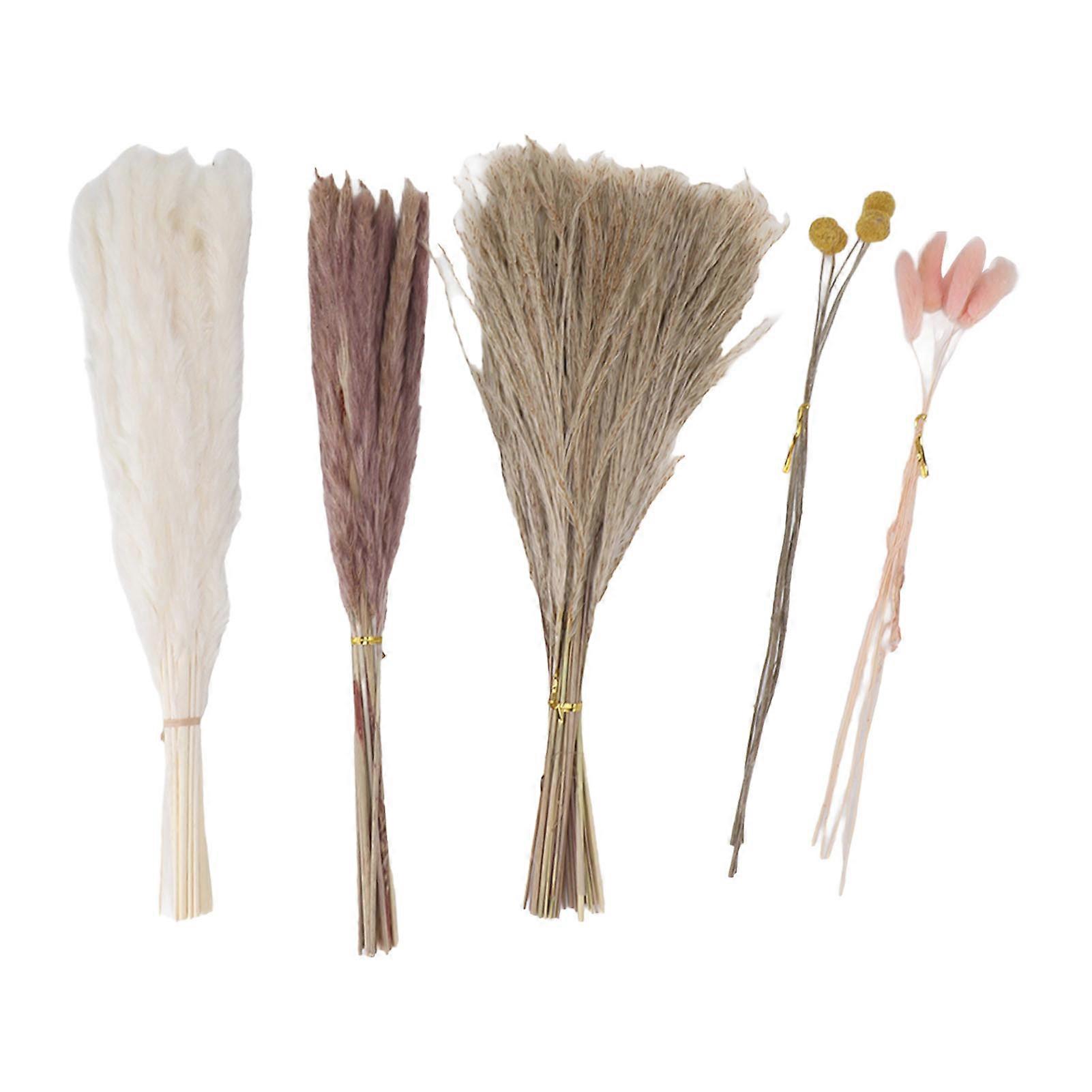 70 pieces dried flower bouquet, pampas grass, reed grass, pink bunny tails, yellow Billy button, dried flower decoration