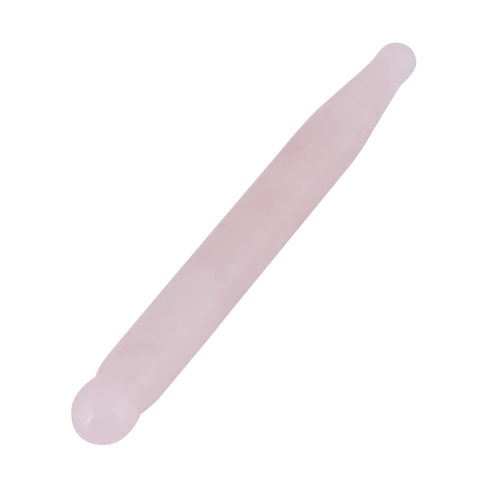 Natural rose quartz crystal facial massage wand, smooth stone stick.