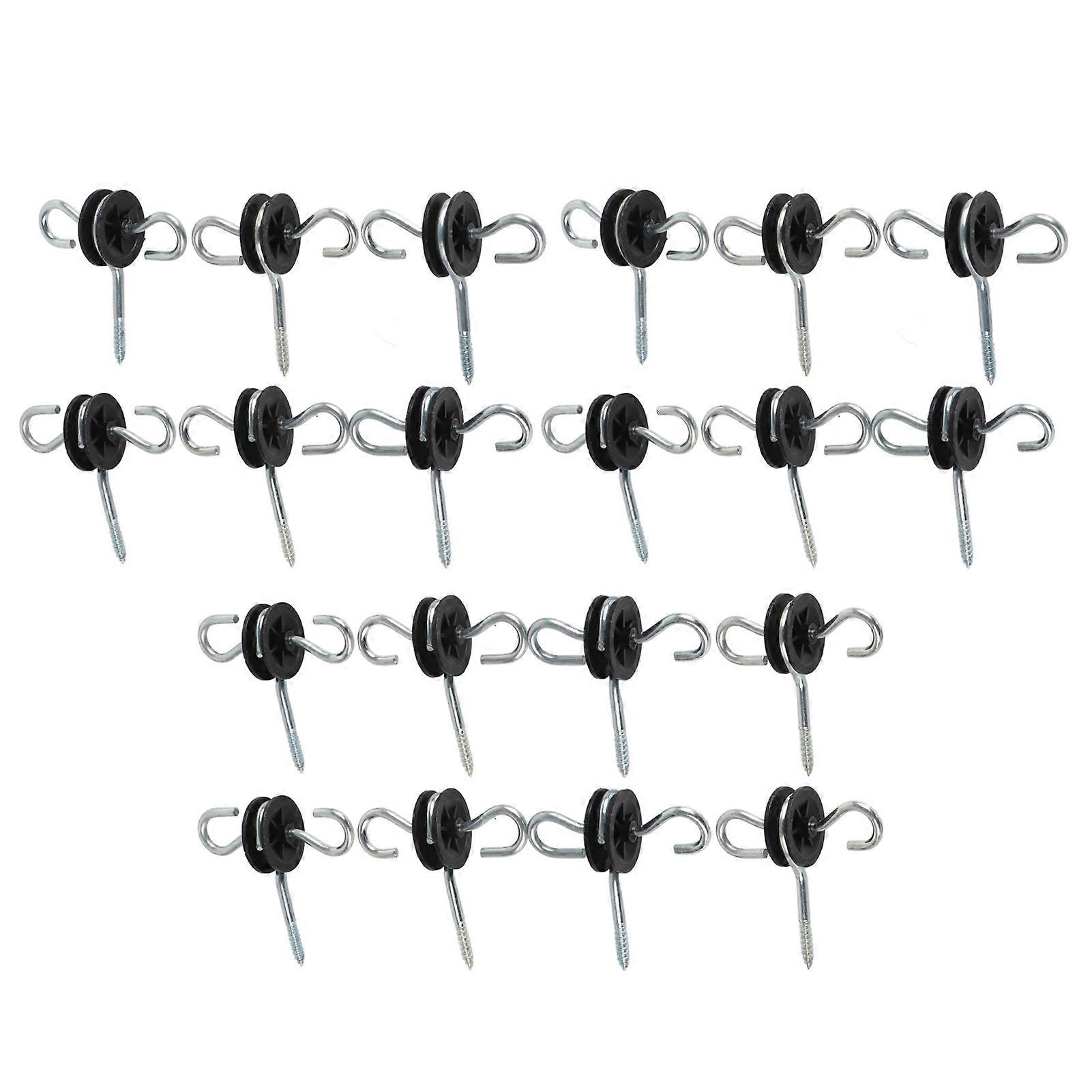 20 Pieces Galvanized Steel and Polypropylene Fence Screw Insulators with Two-Way Hook, Pasture Fence Insulator Ring