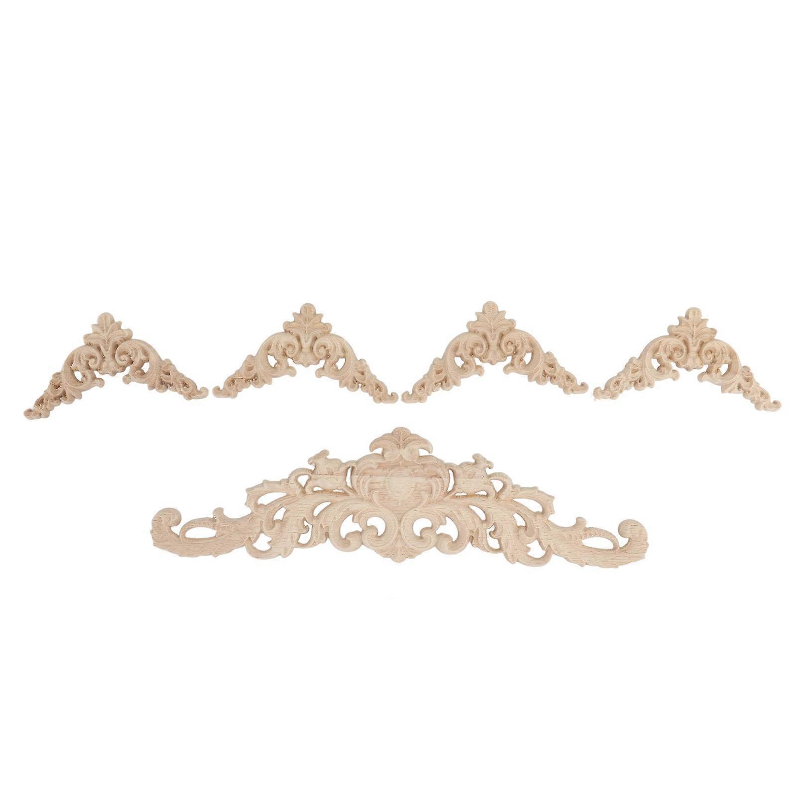 Rubber Wood Furniture Appliques, Wood Carved, 4 Corners and 1 Length, for Cabinet Doors, Beds, and Cupboards