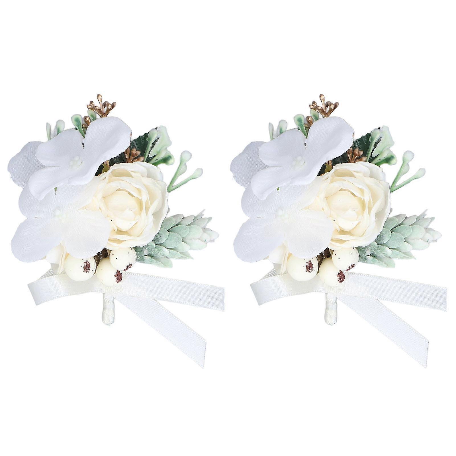 2 Pieces Vibrant Color Boutonniere, Exquisite, Elegant, Portable, Space-Saving, Reusable, Groom Boutonniere for Wedding Party, White