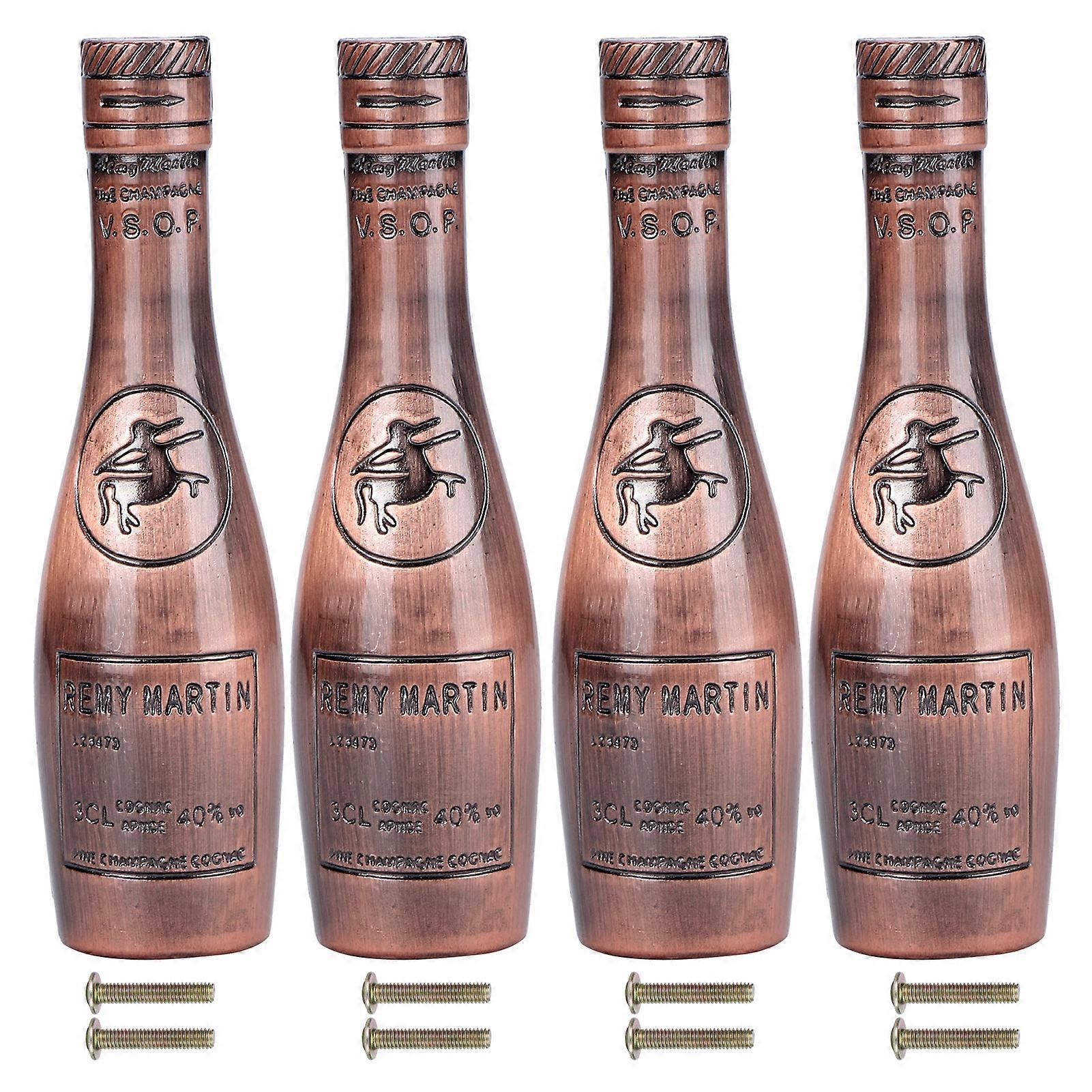 Set of 4 Retro Zinc Alloy Wine Bottle Shape Door Handles, Cupboard Wardrobe Drawer Pulls, Antique Copper