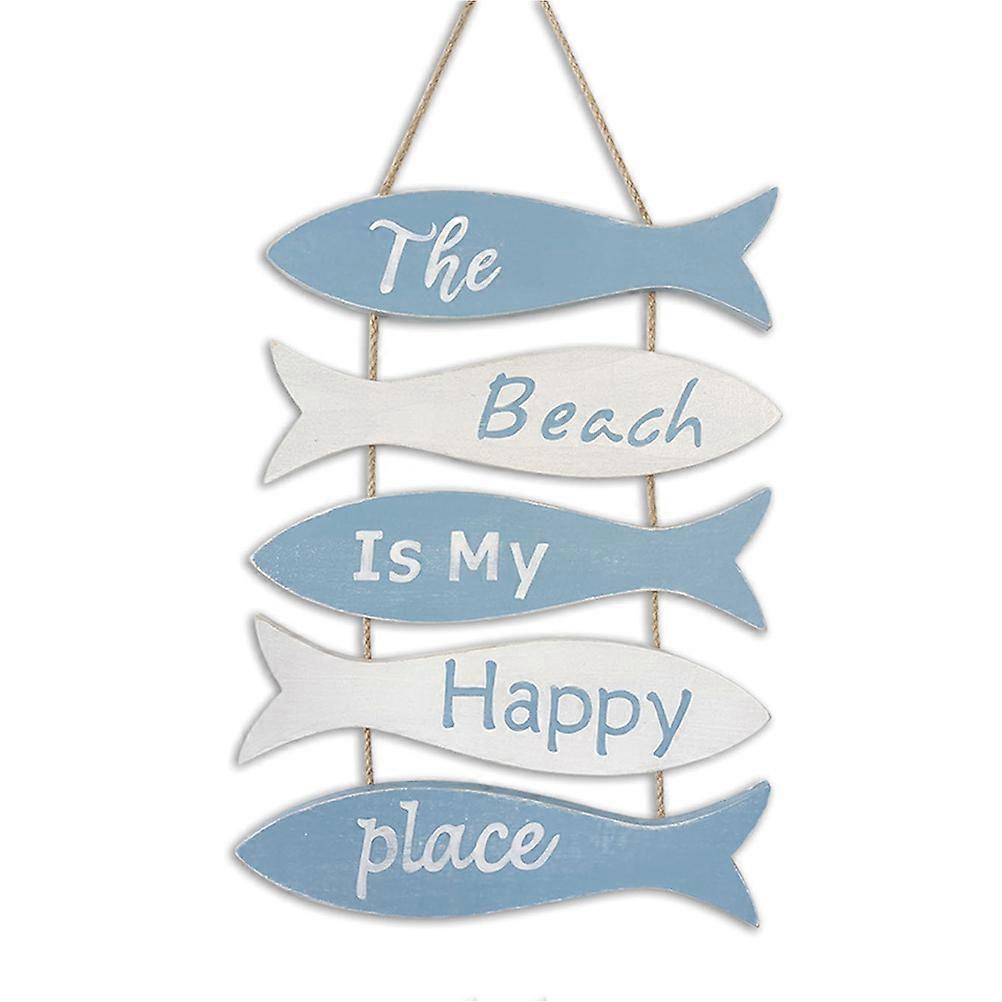 Beach is my happy place themed wall decor, nautical flip flop wall sign, vintage hanging ornament for home bathroom decor