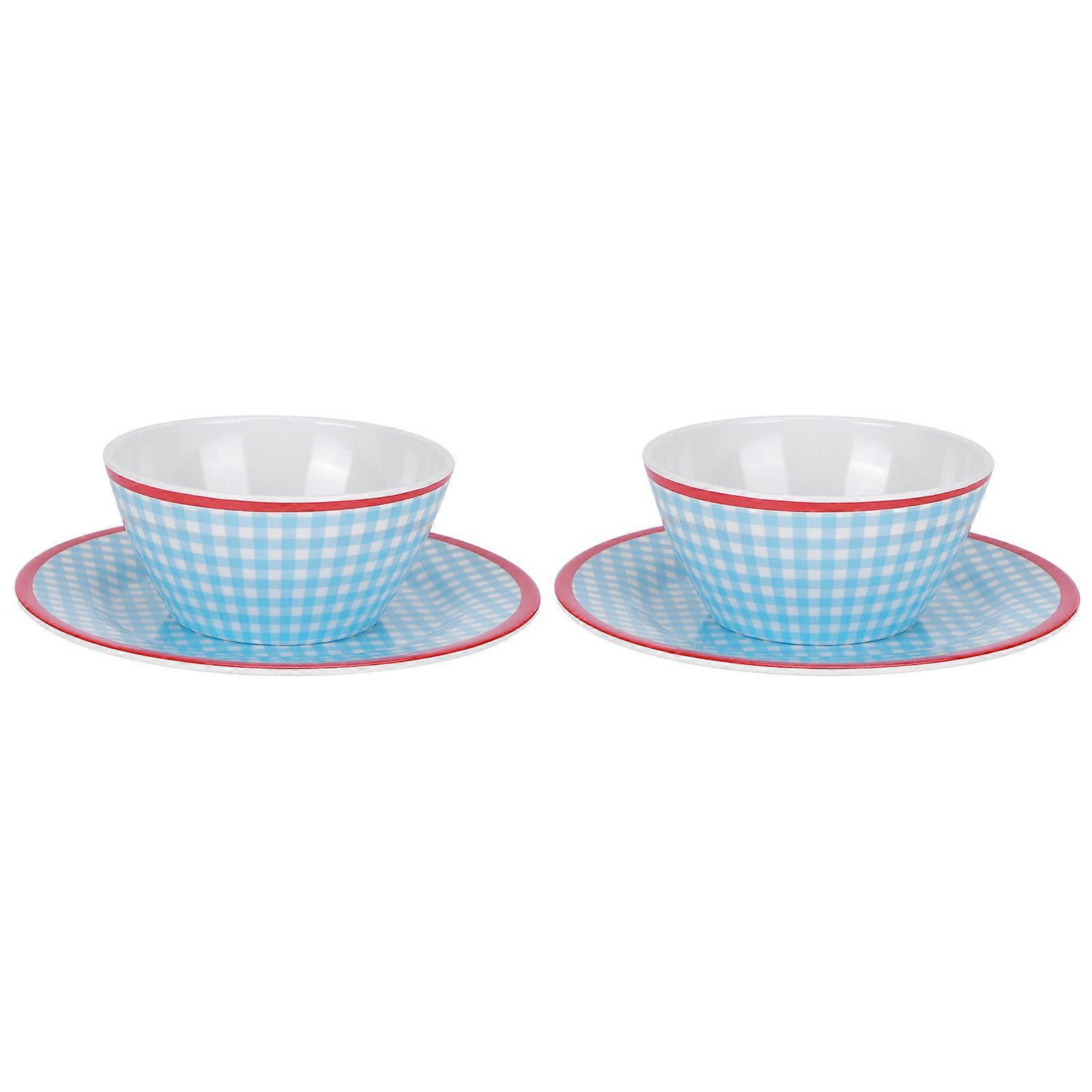 Set of 4 Salad Bowls, Light Blue Grid Pattern Imitation Porcelain Plate, Snack Tableware