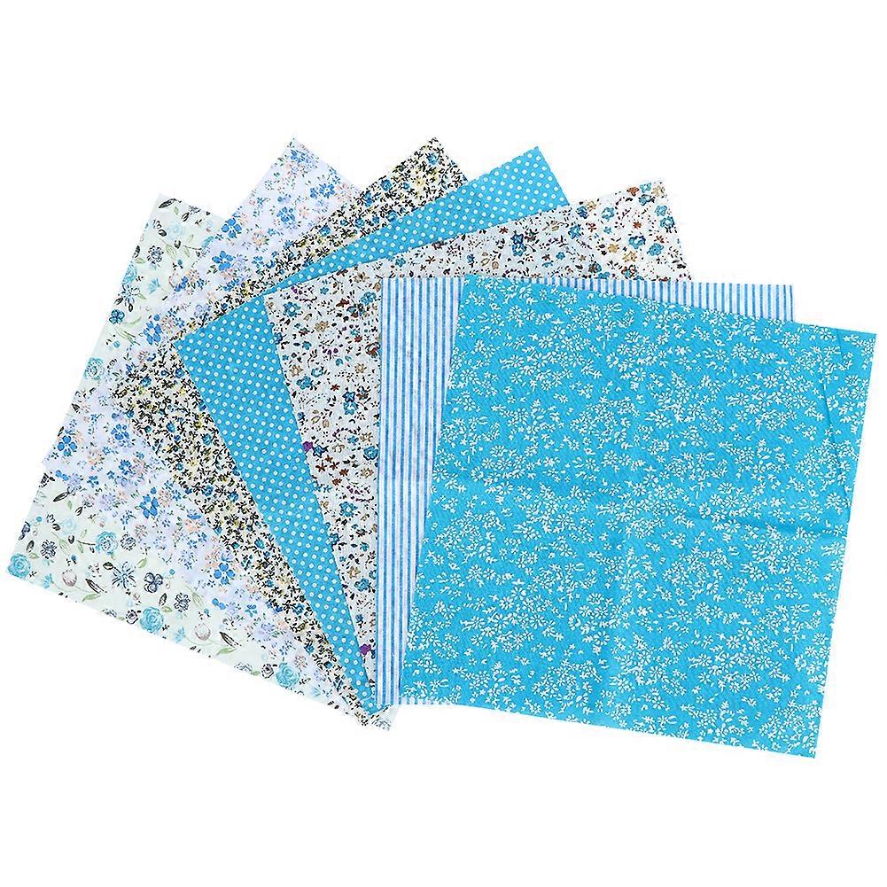7 pieces of beautiful and varied printed cotton fabric in lake blue, 50 x 50 cm, sewing and craft material