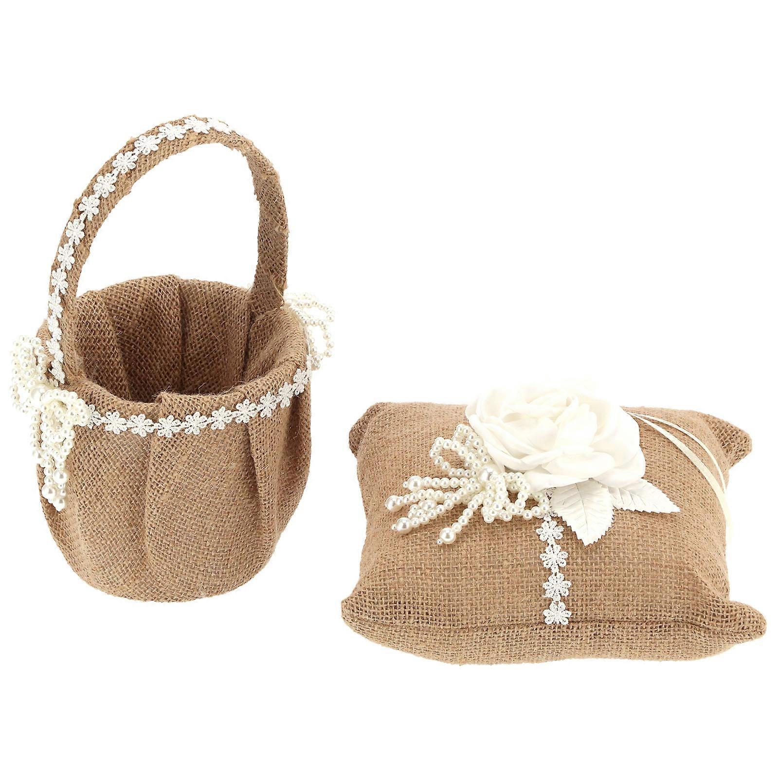 Wedding Hand Held Flower Basket Set with Ring Pillow Beautiful Wedding Basket