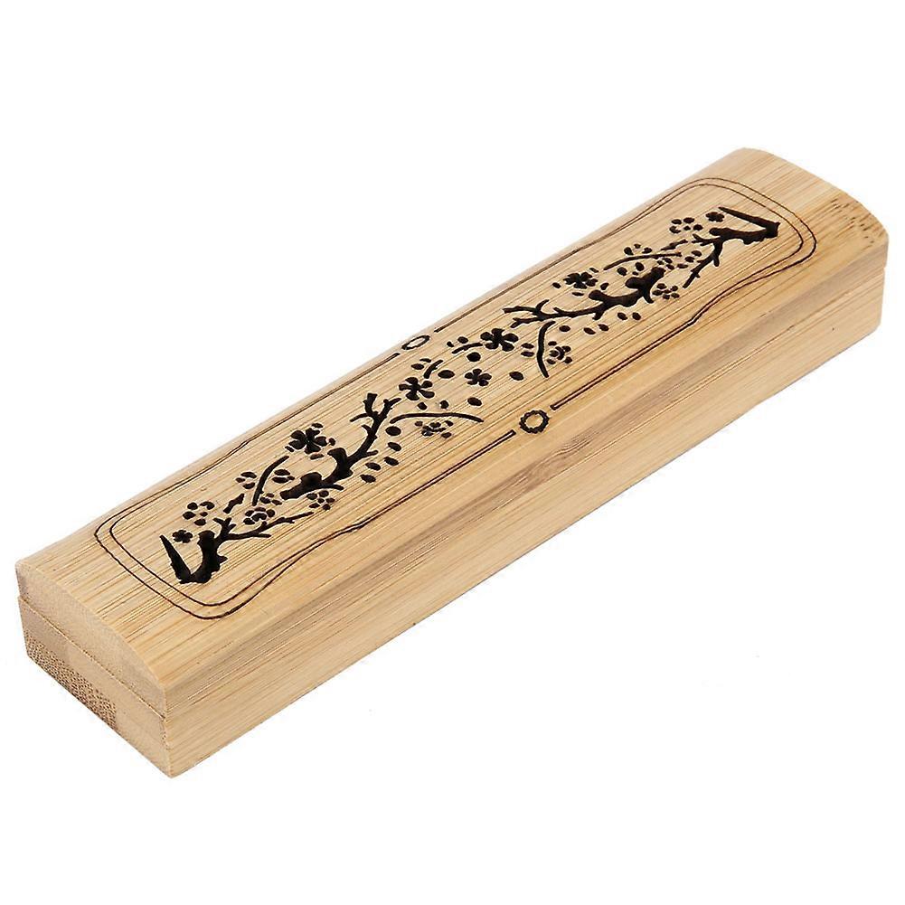 Bamboo Hollow Incense Box Home Decor Craft Ornament with Flower Pattern, 15 x 3.5 x 2 cm
