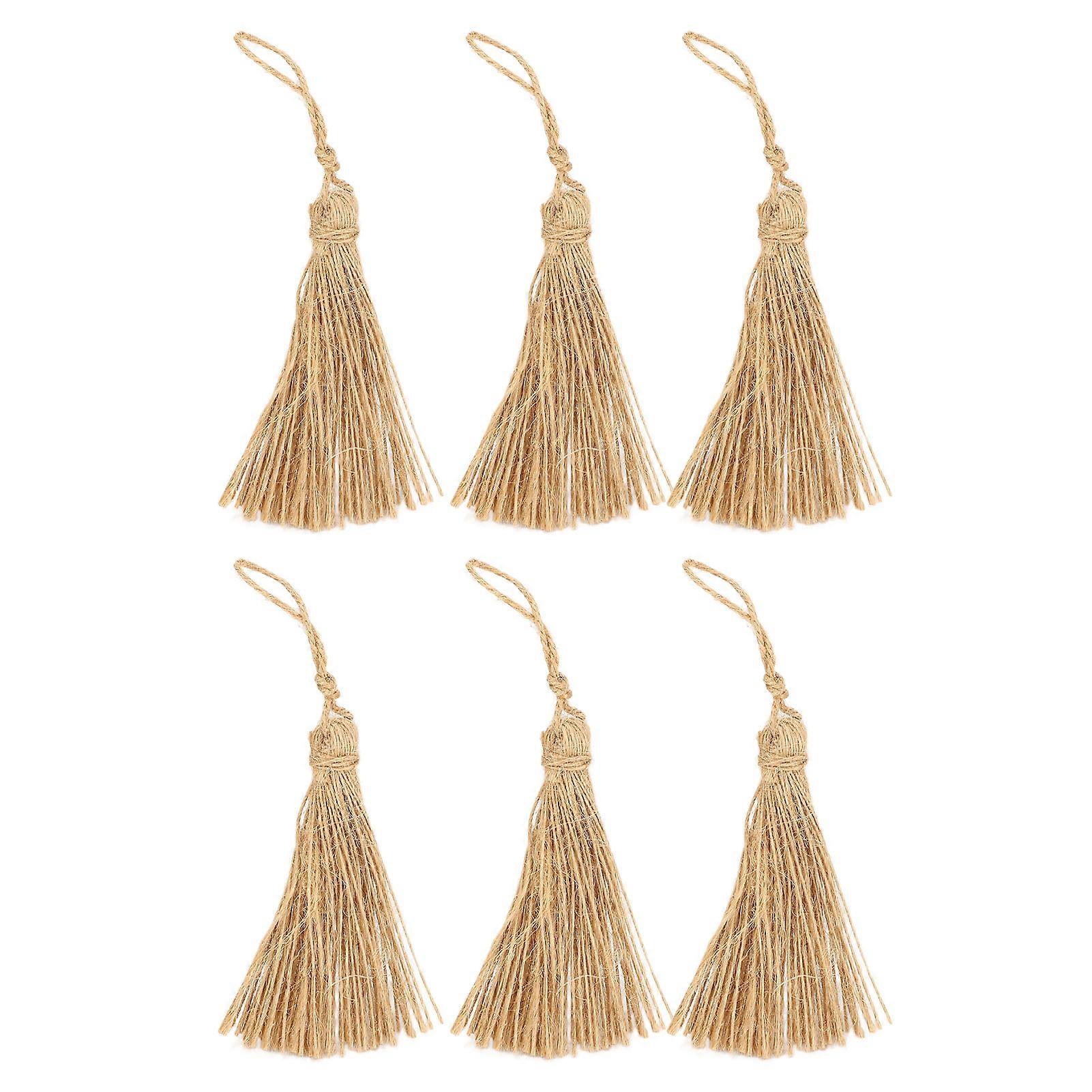 6 pieces simple rustic style natural jute tassels, natural jute tassels widely used for marking books, jewelry, curtains and crafts