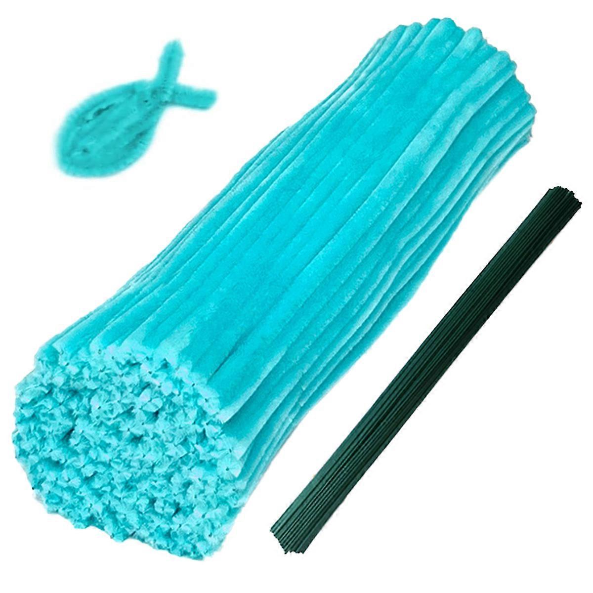 100 Pieces Chenille Pipe Cleaners, Fluffy Stick Craft Supplies, Blue