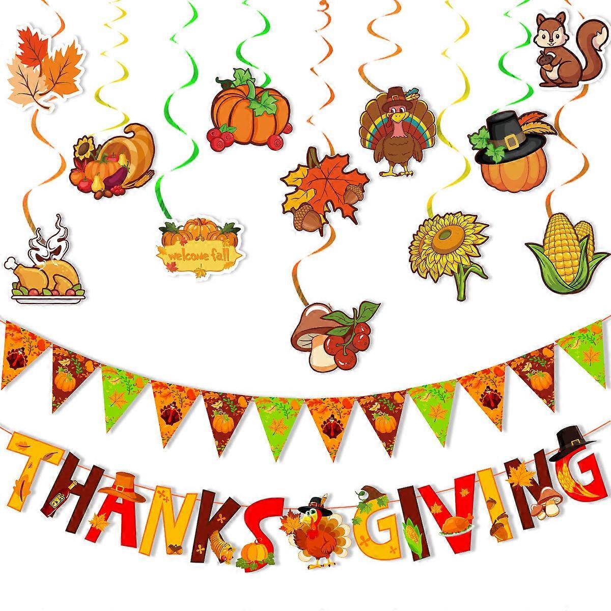Thanksgiving Banner - Pennants and Garlands with Swirl Decorations - 14 Pieces for Fall Party