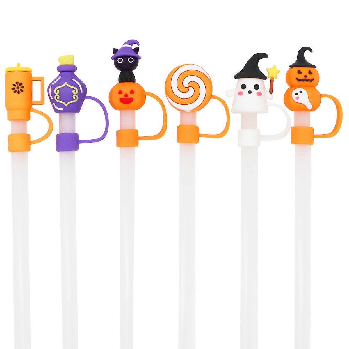 Halloween Straw Hats, 6 Pumpkin Ghost Straw Protectors, Reusable Cup Accessories