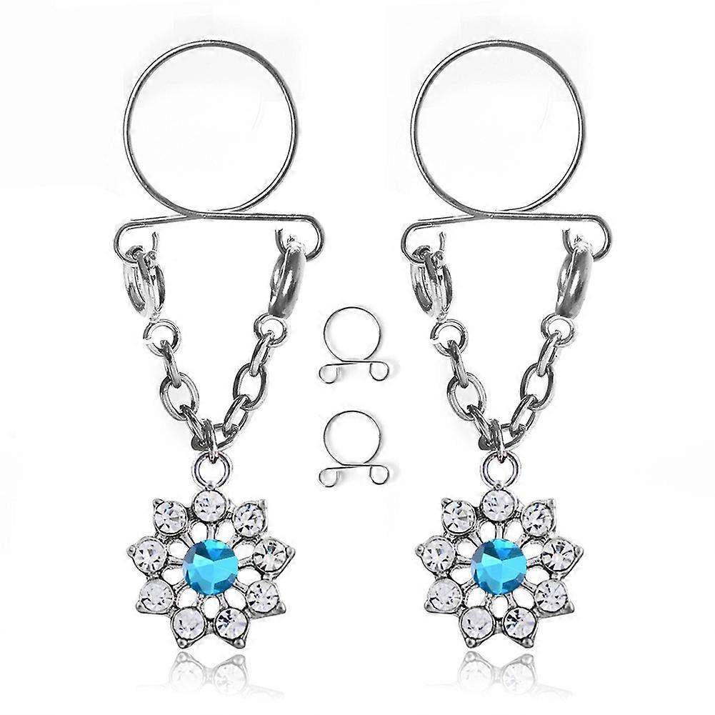1 Pair Fashion Stainless Steel Decorative Flower Shape Body Piercing Jewelry (Blue)