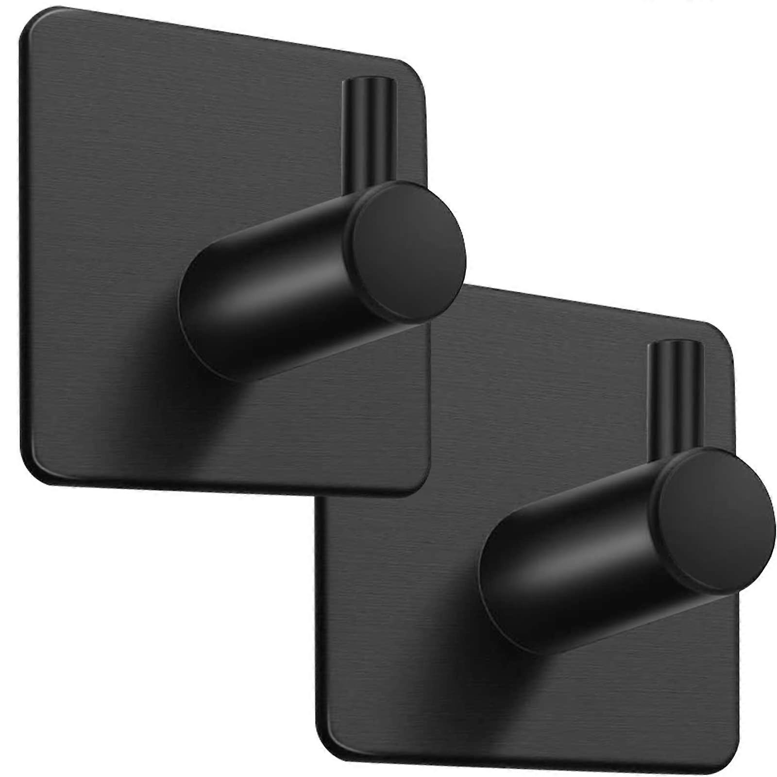 2-Piece Adhesive Wall Hook, Stainless Steel Hanger, Towel Holder for Bathroom, Living Room, Bedroom and Kitchen, Black
