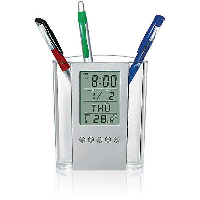 Digital Pen Holder LCD Desk Alarm Clock Pencil Holder Calendar Timer Temperature Desk Electronic Clock Office