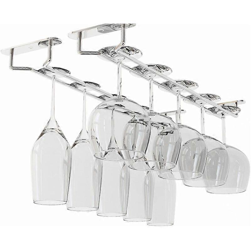 35cm Double Row Stainless Steel Wine Glass Holder, Chrome Iron Hanging Wine Glass Rack