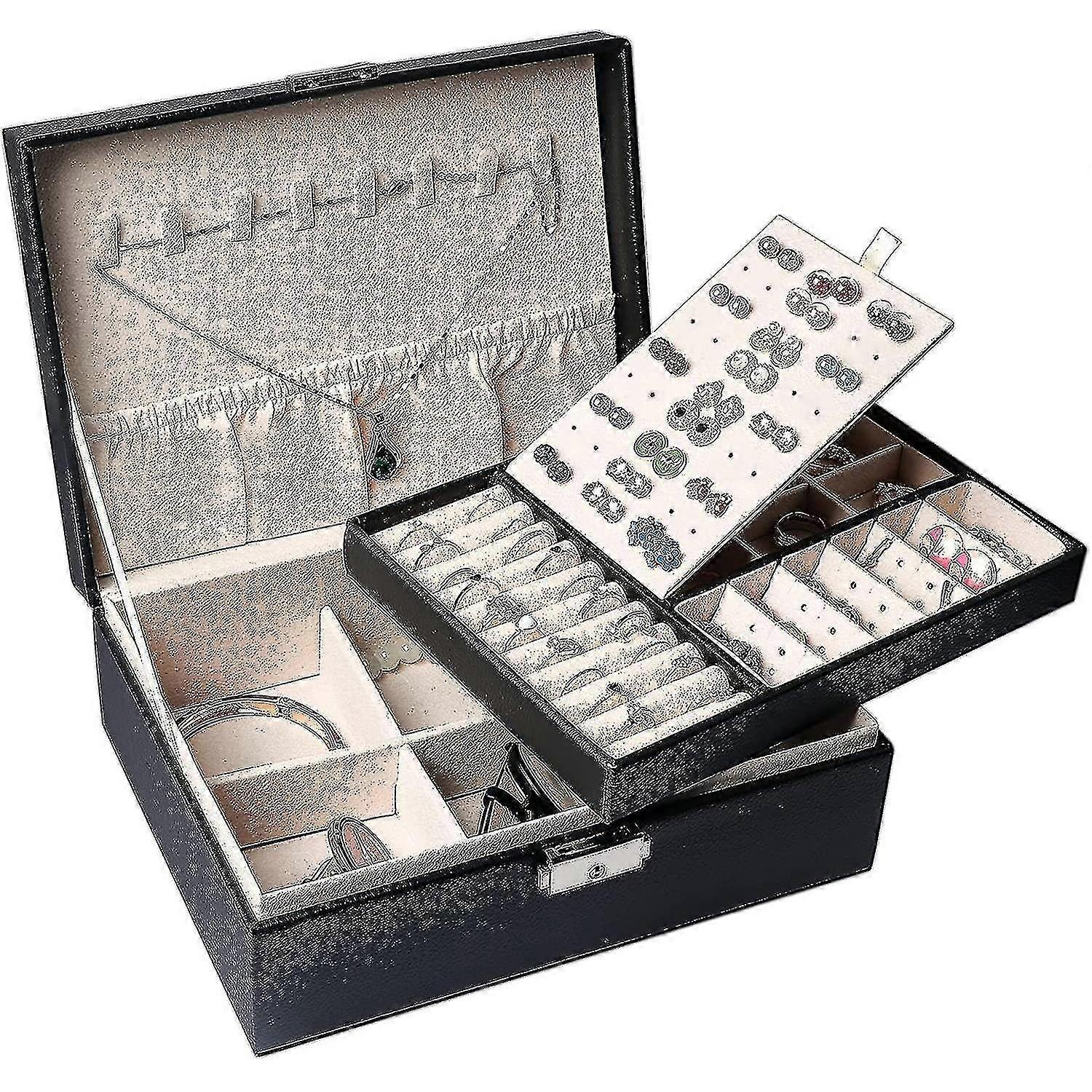 Jewelry Box for Women and Girls, PU Leather Storage Case with Removable Tray and Metal Lock