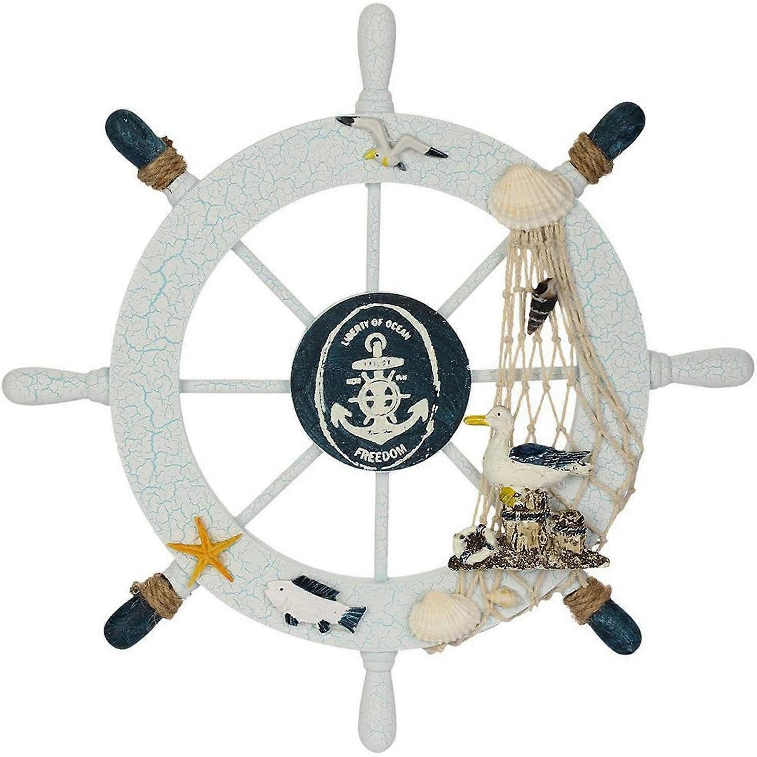 28CM Wooden Ship Wheel with Rope Nautical Steering Wheel Helm Wall Decor Door Hanging Ornament