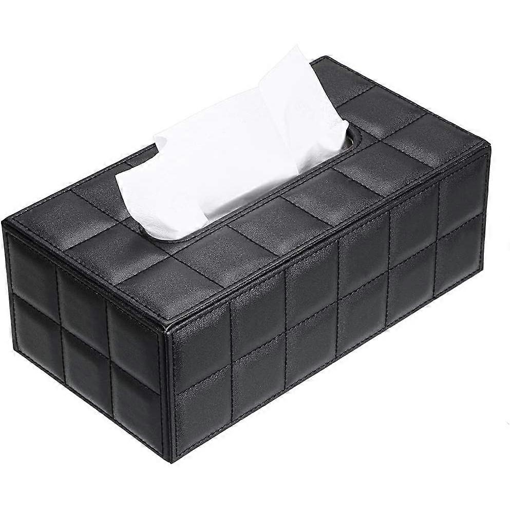 PU Leather Tissue Box Holder, Napkin Dispenser with Magnetic Bottom, for Home, Office, Car, Black Grid