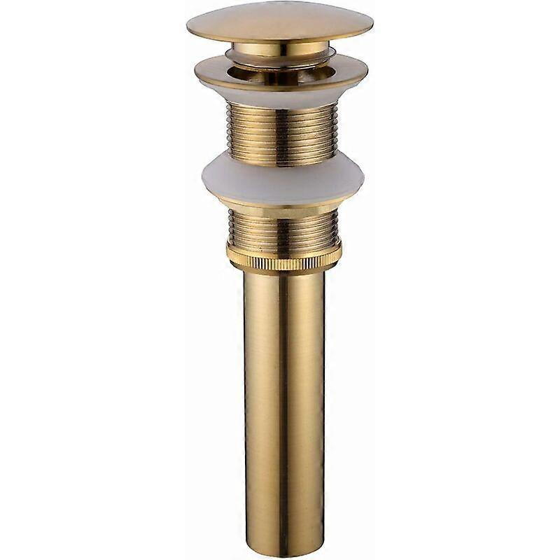 Modern Brass Sink Drain, Pop-Up, Click Clac, Spring-Loaded Stopper, No Slot, No Overflow, Brushed Gold