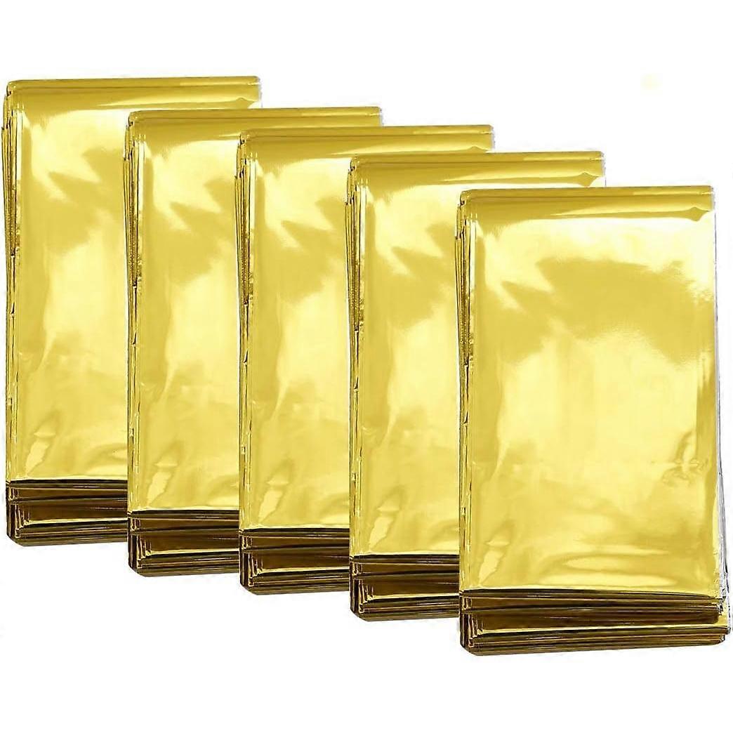 Survival Blanket (5 Pack) Large Size 210 x 160cm, Outdoor Emergency Blanket, Retains Body Heat, Waterproof, for Camping, Hiking, First Aid, Gold