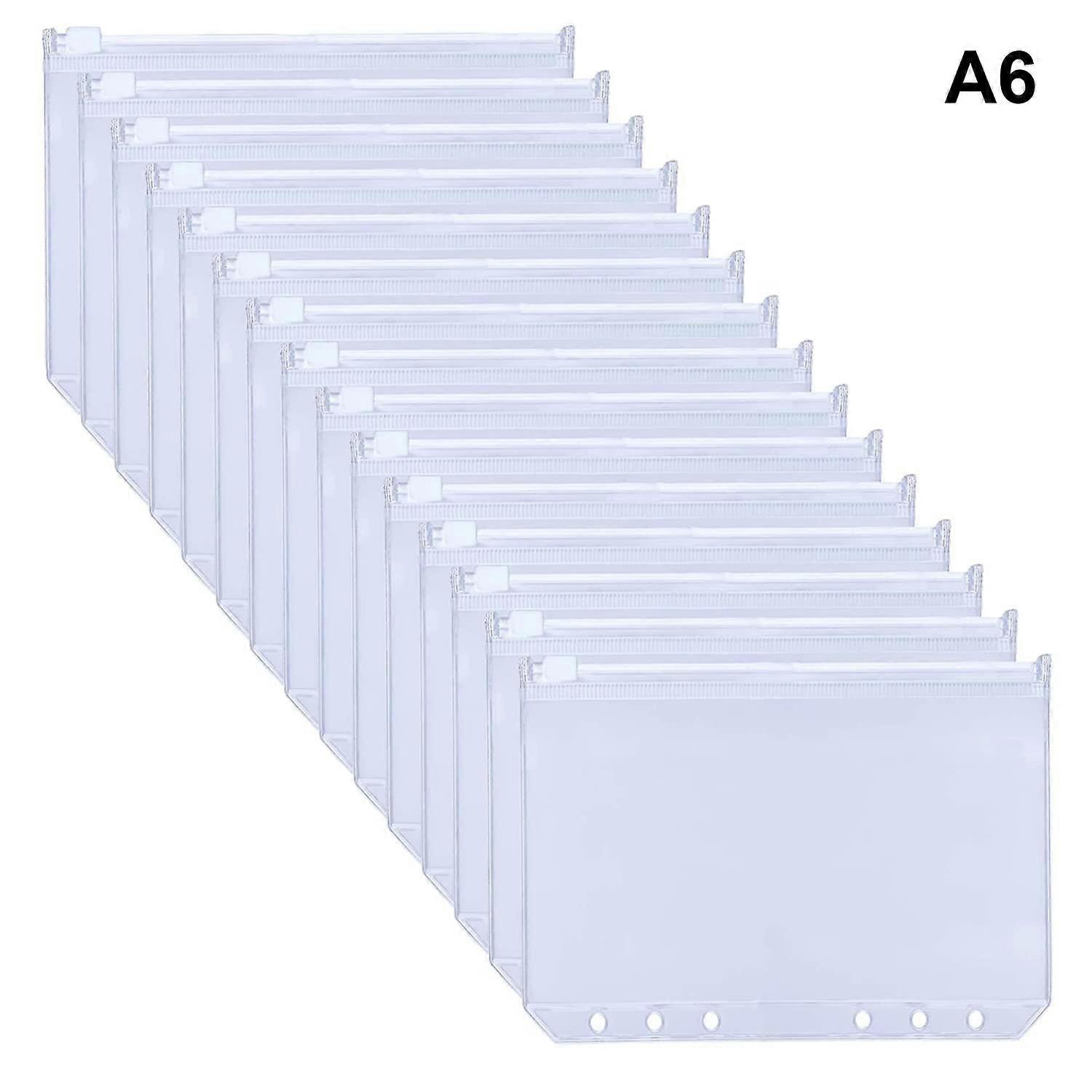 Pack of 15 A5 Binder Pockets, Clear PVC 6-Hole Zipper Pockets, Waterproof Budget and Money Envelopes