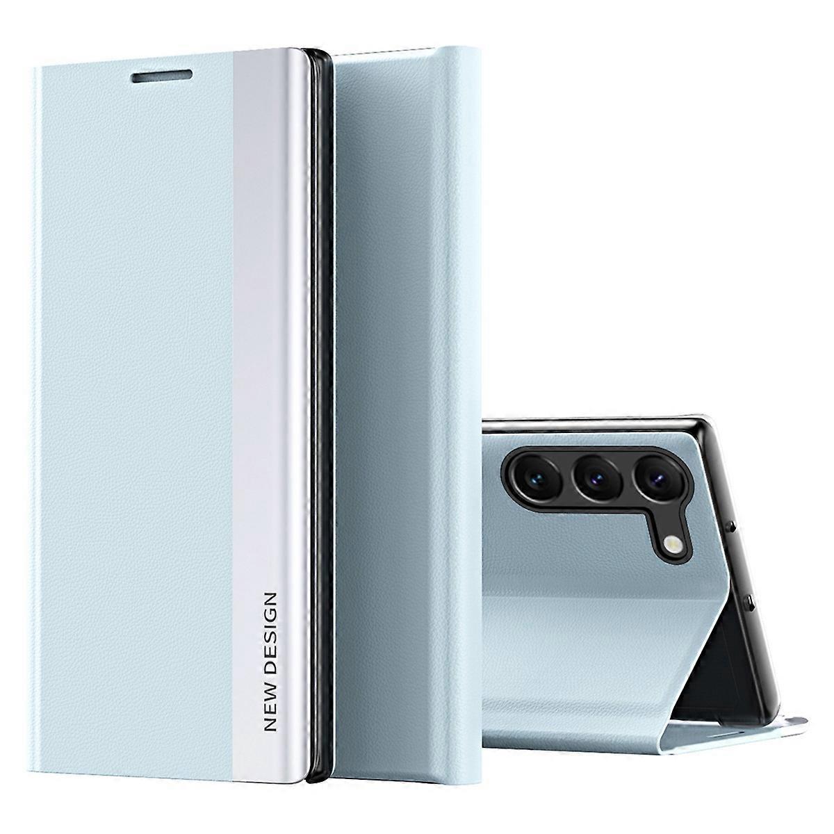 For Samsung Galaxy S23 Electroplating PU Leather Flip Viewing Stand Cover Cell Phone Case - Baby Blu