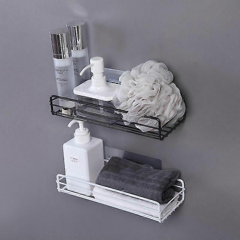 Pair of 2 Self-Adhesive Metal Shelves for Shower, No Drilling Required, Storage Solution for Bathroom and Kitchen Use