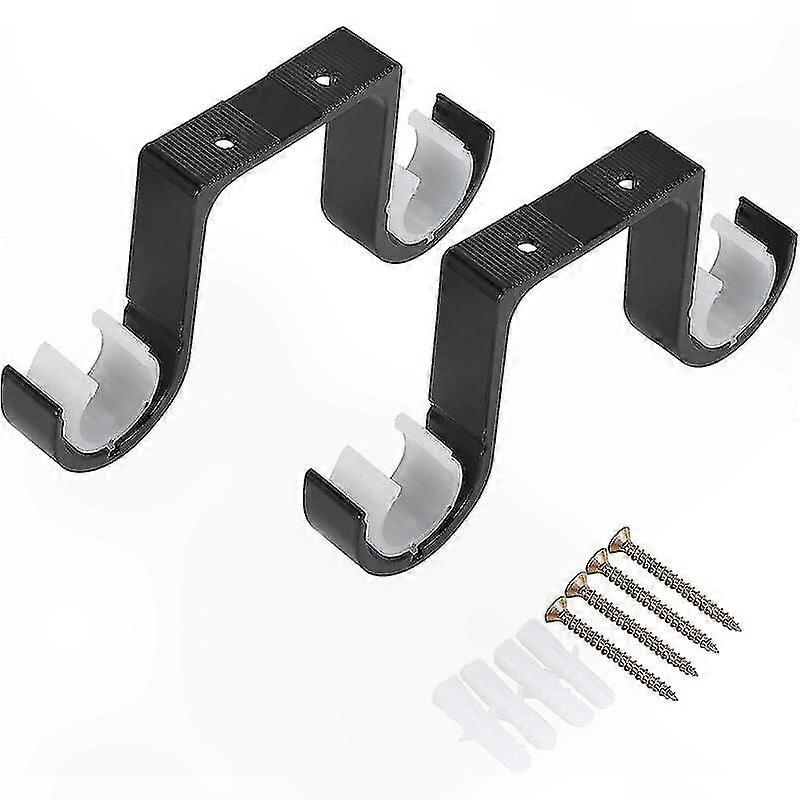 Black Aluminum Alloy Curtain Rod Brackets, 2 Pack Holder for Window Drapes