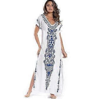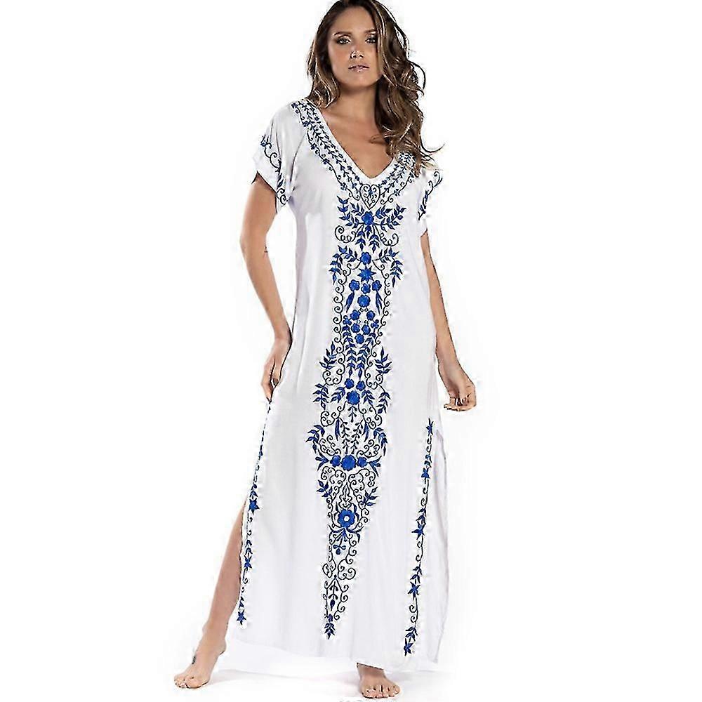 Women's Beach Blouse Embroidered Beach Dress Long Dress Cover-up Dress Sundresses White Blue -CHAN
