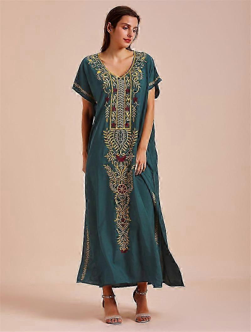 Women's Beach Blouse Embroidered Beach Dress Long Dress Cover-up Dress Sundresses Green -CHAN