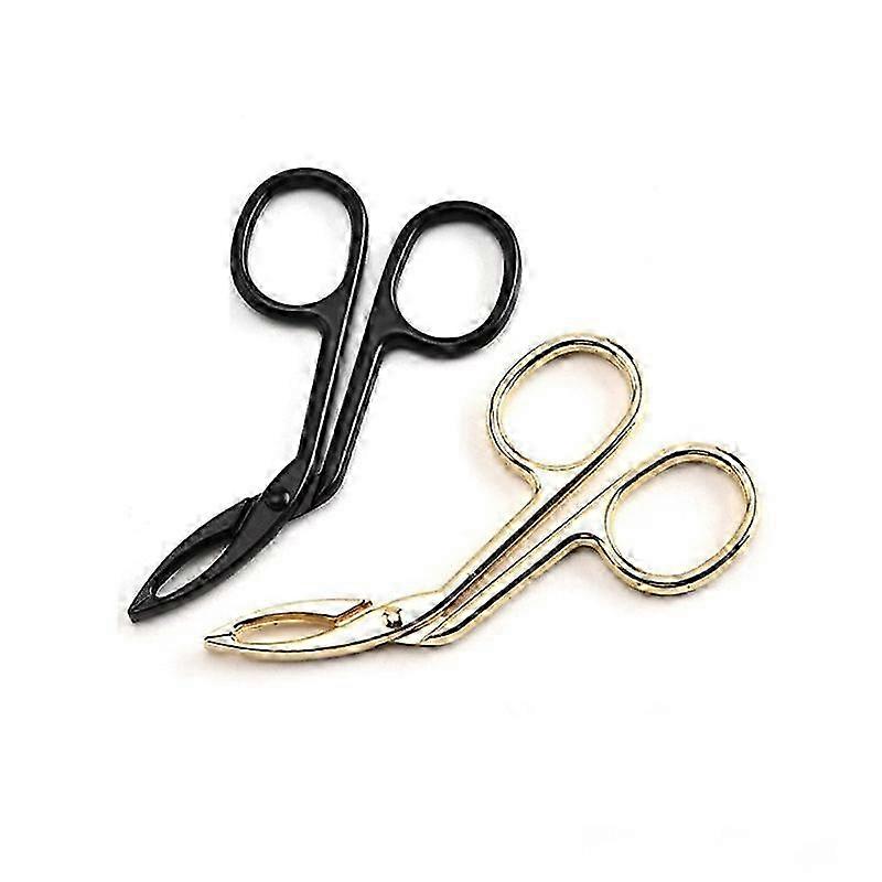 Professional Stainless Steel Eyebrow Tweezers - Scissor Handle Design, Straight Tip for Precise Hair Removal (Black/Gold, 10cm)