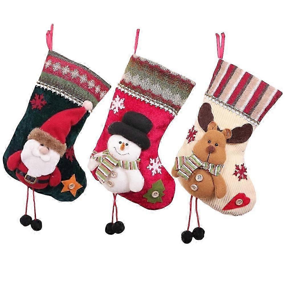 Festive Christmas Stocking Set - Santa, Snowman & Elk Designs for Tree Decor