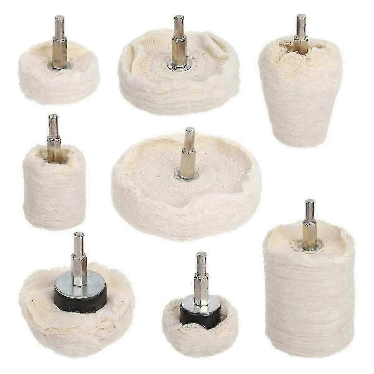 8 PCS Cotton Polishing Wheel Pads for Drill - Metal, Wood, Plastic, Glass & Ceramic Polisher for Aluminum, Stainless Steel, Chrome, Brass &