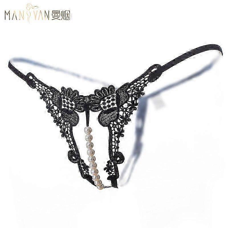 Sexy Lingerie G String Erotic Briefs Lace See Through Pearl Open Crotch Panties Cute Embroidery Thong Sex Underwear Women Tangas-Good