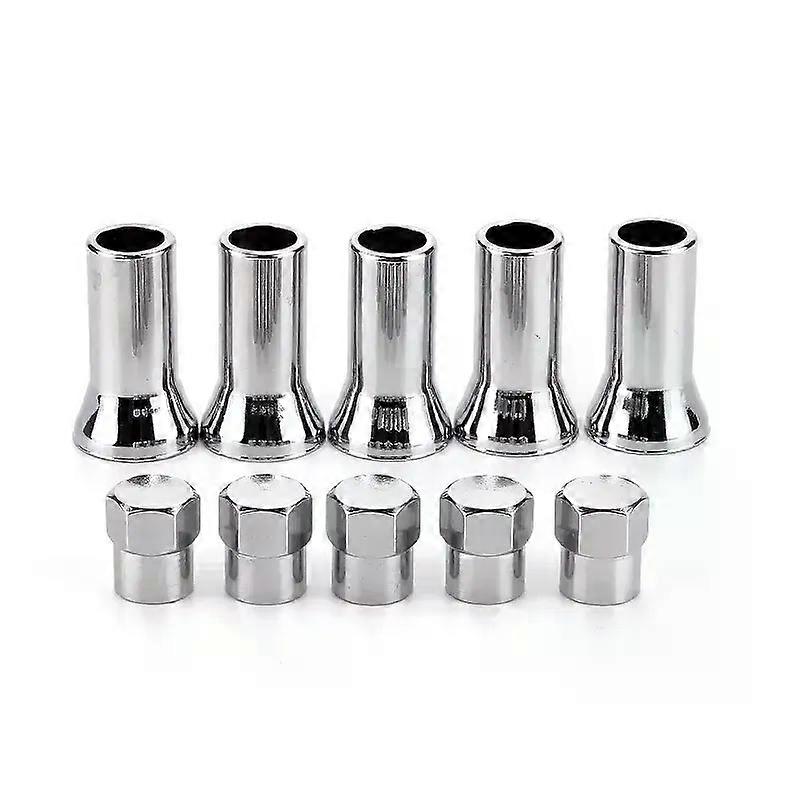 TR414AC Valve Cap Car Truck Wheel Tire Valve Stem Hex Cover Set with Sleeve Covers Valve Caps Auto Tire Accessories Specification _x000D_ Material: plastic chrome plated _x000D_ Size: sleeve length about 25.5mm, cap length about 12mm _x000D_ Color: Silver _x000D_ Model: TR414AC _x000D_ Quantity: 5*sleeve + 5*cap _x000D_ Product Includes:1*valve cover set _x000D_ _x000D_ _x000D_ _x000D_ _x000D_